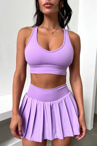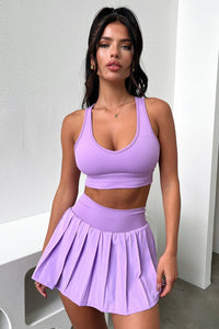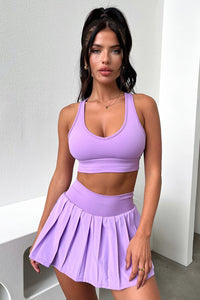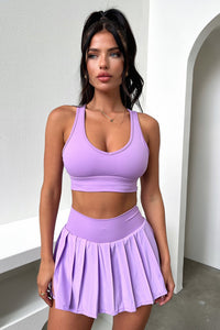 Step up your sporty style with our Alani Tennis Skort! With a stretchy elasticated waistband to keep you comfortable, a pleated skirt with two side pockets in the shorts underneath, and our TSF logo on the back, you'll be looking fly on the court. Style her with the matching sports bra for an unbeatable off duty look!