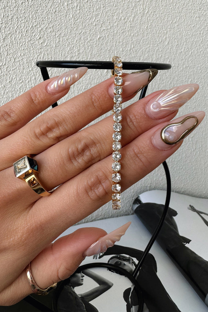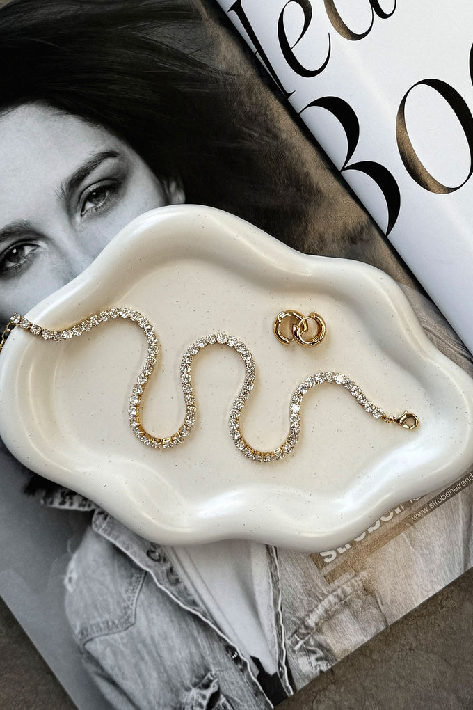Add some edge to your look with the Allegra Tennis Necklace! Featuring sleek gold square detailing and an adjustable clip, this 18K gold plated necklace pairs perfectly with the matching bracelet. Elevate your style with Allegra today!