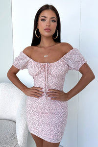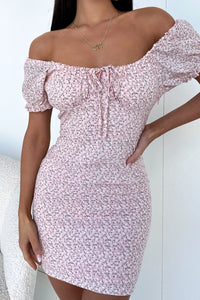 Can't get enough of pretty summer florals for days out in the sun. The Alma Dress in her pretty Purple, floral fabrication features off the shoulder sleeves, cupped bust with front tie up bow, invisible side zipper and flowing skirt. Complete your pretty girl vibe with chunky sneakers and take your bae out on a day date.