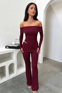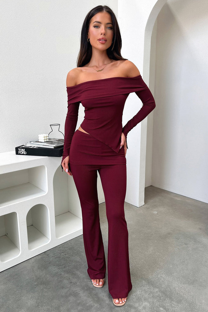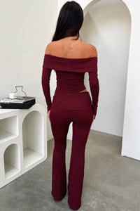 She's comfy and cute! These white flared pants are crafted with ribbed material, a fold-over waistline and mid-rise fit that is sure to make you look amazing. Style with the matching top and white sandals.