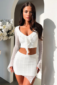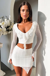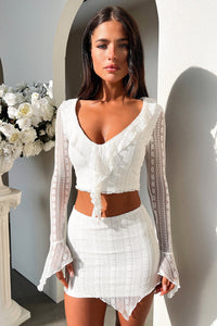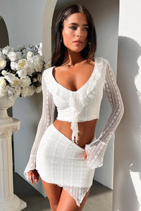 Add a splash of pizzazz to your wardrobe in the Aperol Skirt! The perfect blend of sweet and sassy, this mini number features lettuce trim edges, double lining and a stretchy waistband to keep you comfy. Plus, the lace material is sure to add some va-va-voom to your style! Get ready to shimmy and shake in this fab skirt! Pair with the matching top and your go to heels!