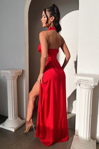 Arabelle High Neck Satin Maxi Dress - Red