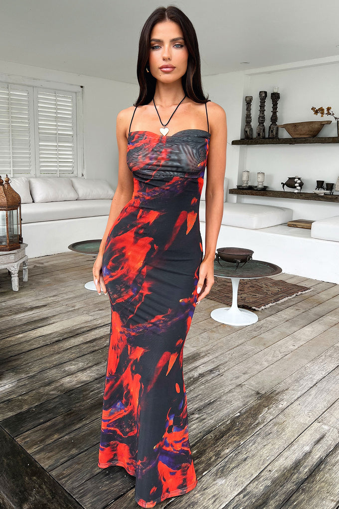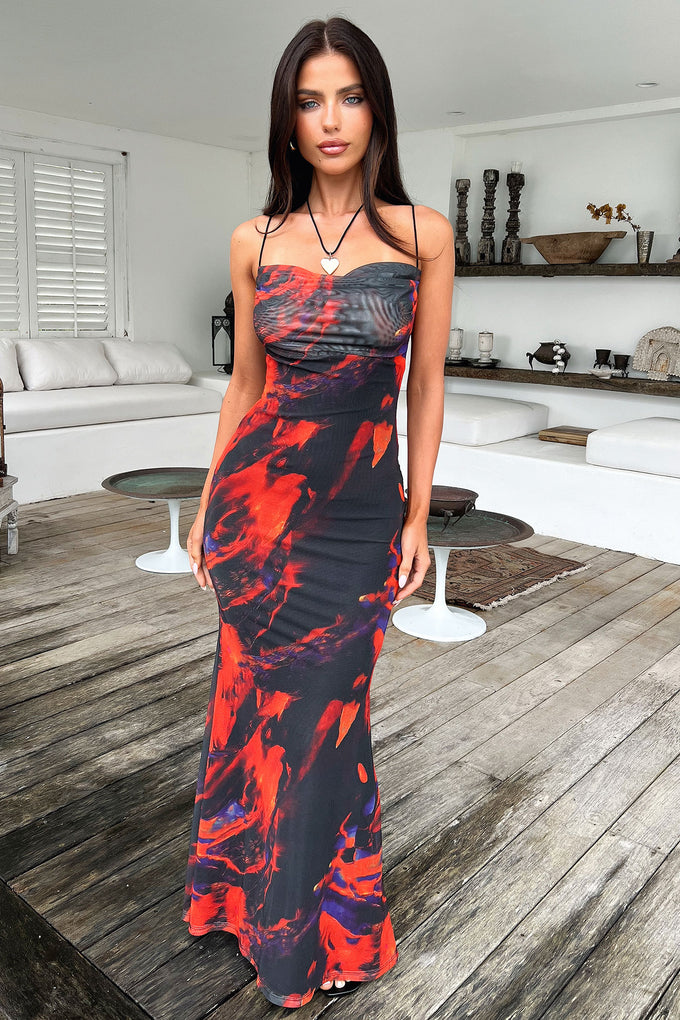 Get ready to slay in our Barb Maxi Dress! This bodycon dress features a cowl neckline, thin straps, and a mesh outer material that adds a touch of glamour. The lining on the inside ensures a comfortable fit. Perfectly paired with black heels for a hot dinner date!