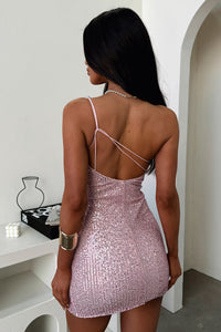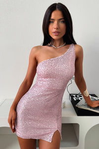 Bethany One Shoulder Sequin Mini Dress - Pink Sequin
