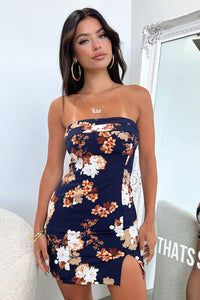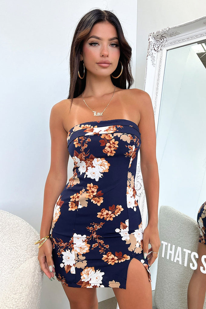Next level update in the Charms Mini Dress! She offers a structured bodycon fit, a strapless cut, a little side slit, double lined material and an invisible back zipper. Style her with white heels, a little bag and some hoops for a chic stylish look.