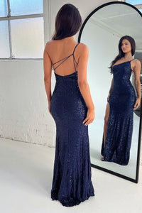 Formal season done right in the Ciara Maxi! She offers a full sequin body from head to toe, featuring a one shoulder design with thin straps, a bodycon fit with a flowy bottom, double lined material and a cheeky side slit. Style her with black strappy heels and a full glam face for your next formal event!