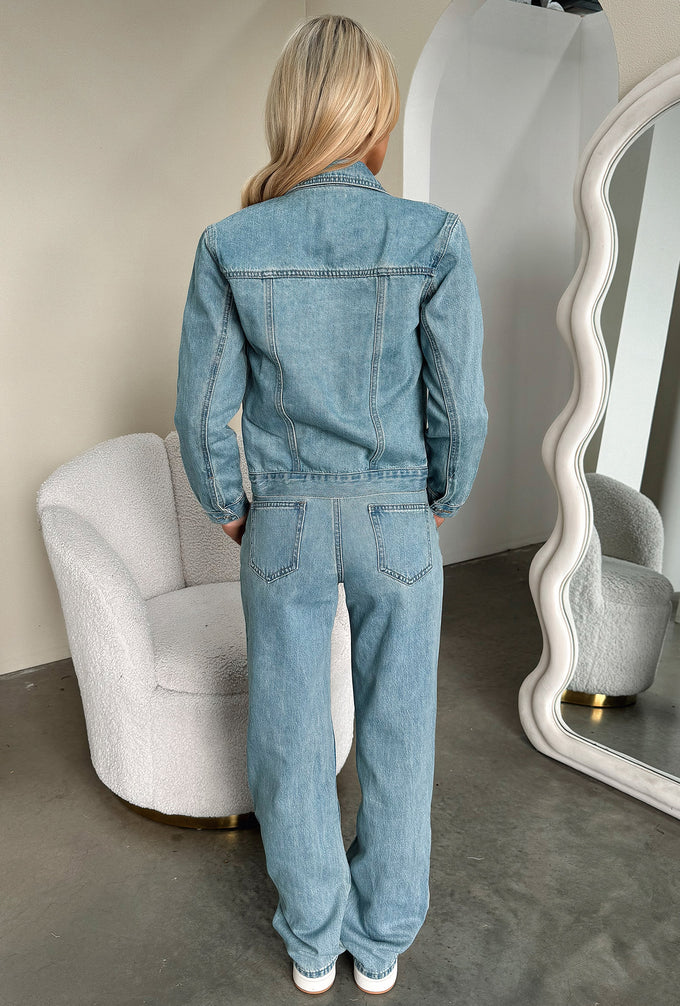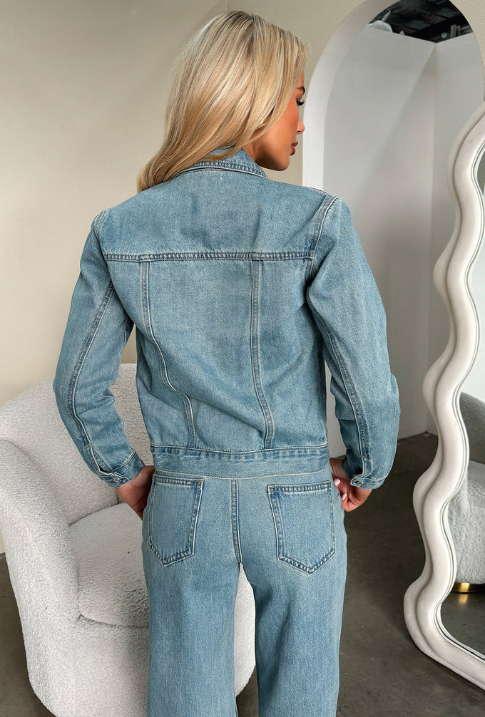 Stay warm and stylish with our Damari Denim Jacket in Blue. With a thick collar, 7 center buttons, and 4 functional pockets, it's the perfect addition to your casual going out outfit on chilly days. Upgrade your wardrobe now!