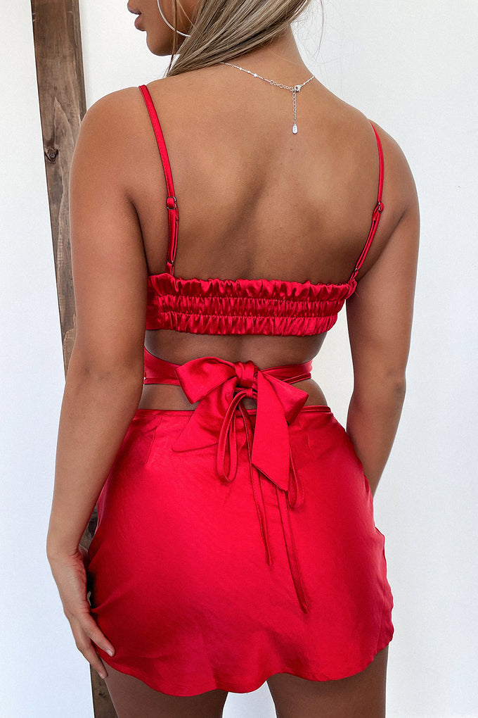 The sweetest two piece you'll ever see! The Diesel Skirt has a slip on fit, a silky satin like material, an invisible side zipper and a string detail to tie around the waist for a cinched effect. Style with the matching crop and your fave heels for a dinner date with your fav gal pals.