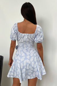 the Perfect summer dress! She offers a flowy fit with frilly edges, short puffy sleeves, double lining, a tie up detail at the bust, a wait tie belt and an invisible back zipper. Match her with white sandals for a cute picnic date.