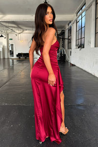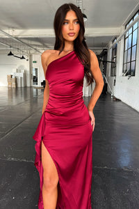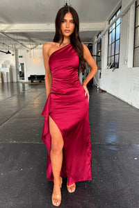 Elianna One Shoulder Satin Maxi Dress - Burgundy