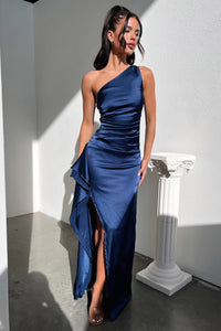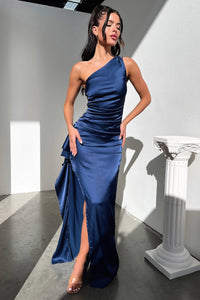 Elianna One Shoulder Satin Maxi Dress - Navy