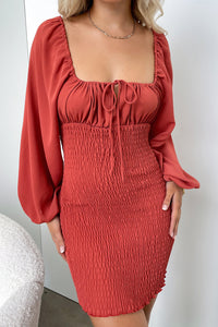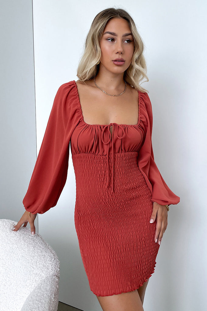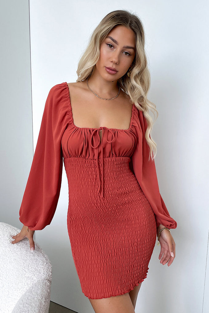 A softie on the inside but a baddie on the out! The new in Ella Dress features long balloon sleeves that can be worn on or off the shoulder, an elasticated neckline with a cut out deet in the middle and a shirred material with a bodycon fit. Style her with nude heels, gold hoops and a nude lippy for a cute brunch with the girls fit.