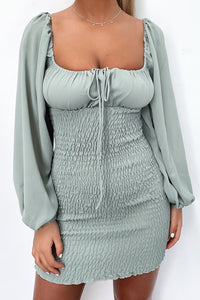A softie on the inside but a baddie on the out! The new in Ella Dress features long balloon sleeves that can be worn on or off the shoulder, an elasticated neckline with a cut out deet in the middle and a shirred material with a bodycon fit. Style her with nude heels, gold hoops and a nude lippy for a cute brunch with the girls fit.