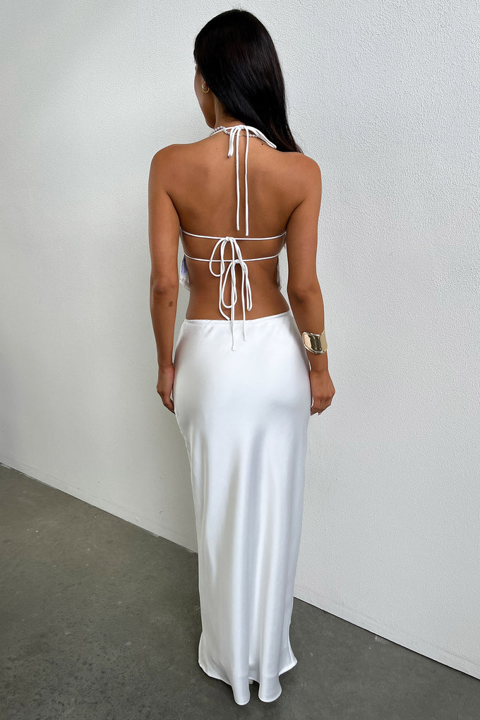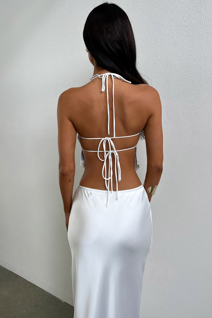 Elevate your style game with the Hattie Crop Top! Made from silky soft material and featuring delicate lace trimming, this top is perfect for a night out. With tie up straps across the front and back, pair her with jeans and heels for a fierce, yet playful look!