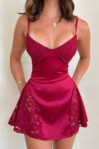 Step out in style with our Kaley Dress! This mini dress is made with luxurious satin material and features delicate lace detailing. The underwire provides extra support, while the thin adjustable shoulder straps ensure a comfortable fit. The invisible back zip with a hook and eye clasp makes for easy wear, and the lace up tie adds a touch of playful charm. Perfect for your next night out, pair with heels and jewellery for a stunning look!