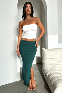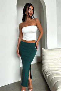 Your new staple skirt is here babe and you are going to love her. The Karlie Knitted skirt features a sweet midi length, made from a soft ribbed, knit material with elasticised waist band and thigh high split. Keep her cash' with a cropped tee and sneakers for the day or a bodysuit and heels for the night.