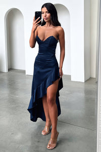 Let the Leora Maxi Dress be the star of your next special event! This fabulous frock features a structured top with boning, a frilly hem, and an invisible back zipper — just add a pair of strappy heels and you'll be ready to go! Perfect for making a statement that won't be forgotten!