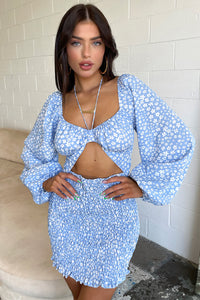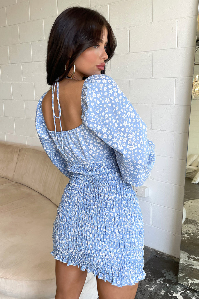 The absolute queen of summer florals is the new Raina Dress in Blue! This beauty features a cheeky cut out detail underneath the bust, a tie up detail at the waist, long balloon sleeves with cuffed ends, that can be worn on or off the shoulder and shirred fabrication all over for extra stretch. Pair her with white some white heels and a lil baguette bag for a cute Sunday lunch look.
