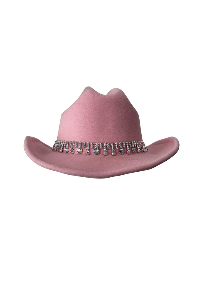 Giddy up in style with our Saddle Up Hat in pink! This cowboy hat features silver gem detailing for a touch of glam. Complete the look with our matching bodysuit and chaps. Yee-haw!
