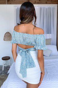 Go wild for the Seconds Crop this festival season. This smoking hot number features a polka dot print, with shorts sleeves that you can wear on or off the shoulder and a tie up waist band to highlight your waist. She looks killer with a pair of high waisted leather shorts and boots for your next festival.