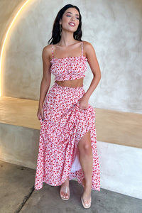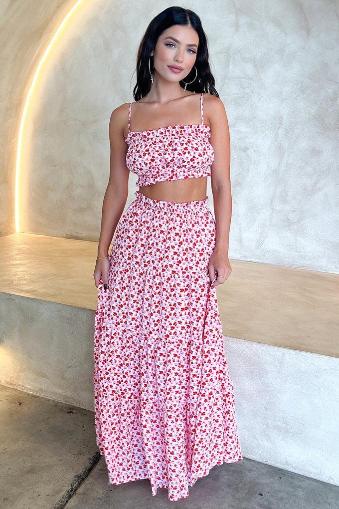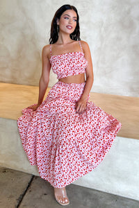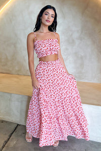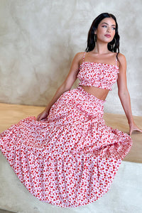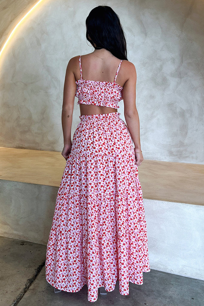 Selina Tiered Maxi Skirt - Red Floral
