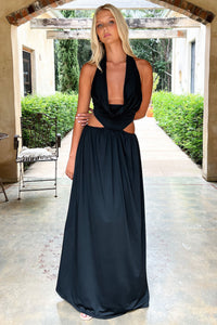 Soraya Plunge Halter Neck Maxi Dress - Black