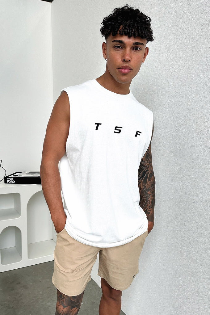 Your new staple with a modern minimalistic twist. The Troy Tank Features a relaxed fit with a round neck and wide sleeveless cuts, along with some TSF branding and graphics on the front and back. Pair with relaxed cargo shorts and sneaks or hit up your workout sesh paired with sports shorts and some runners.