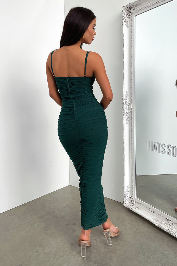 The showstopping Zena Dress now comes in Full Length, perfect for your next special occasion. This dress is made from semi-sheer stretch material and features all over ruching, thin adjustable straps, built in underwire bra in the bust, full lined and has an invisible zip at the back. Paired with a clutch, your fav black strappy heels and statement jewellery to complete your 10/10 look.